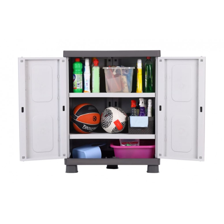 Αποτελείται από 2 πόρτες, 2 ράφια με αντοχή βάρους έως 25kg. Η εύκολη συναρμολόγηση παράλληλα με την ανθεκτική της κατασκευή στις καιρικές συνθήκες την καθιστούν ως μία ιδανική λύση για το μπαλκόνι σας ή το γκαράζ. Διαθέτει 5 πόδια για καλύτερη στήριξη και εύκολο καθάρισμα.
