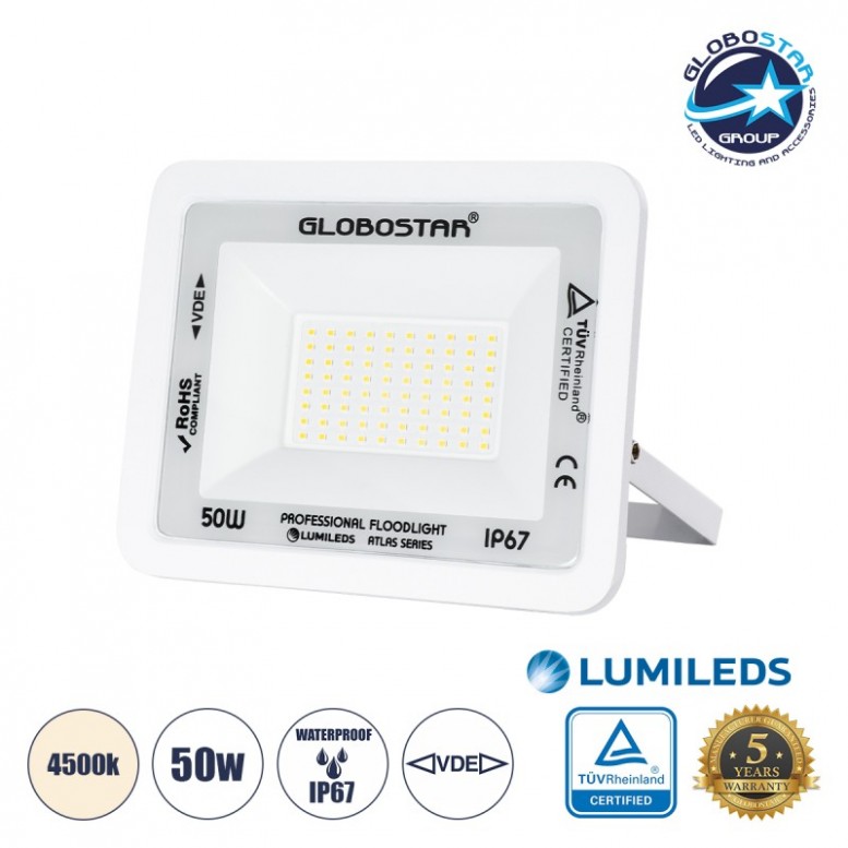 Έχει συνολική ισχύ στα 50 Watt και μπορεί να καλύψει τις ανάγκες φωτισμού μίας περιοχής 30 έως 50 τετραγωνικών μέτρων. Είναι κατάλληλος για τον φωτισμό αυλών μεγάλης έκτασης, κήπων ή εξωτερικών χώρων συναθροίσεων. Παράλληλα, μπορεί να χρησιμοποιηθεί για τον φωτισμό των εξωτερικών χώρων σε επιχειρήσεις, καταστήματα ή και χώρους στάθμευσης αυτοκινήτων. Εκπέμπει φυσικό λευκό φως στα 4500K αποδίδοντας μία ισορροπημένη απόχρωση και μία πιο φυσική αίσθηση φωτισμού, παρόμοια με το φως του ηλίου.