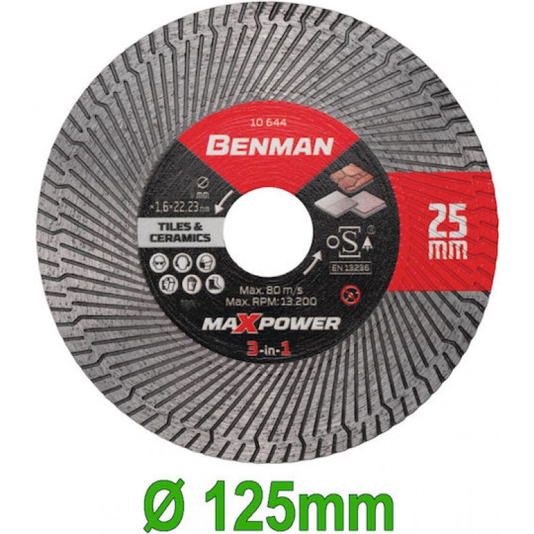 Benman Δίσκος Κοπής Δομικών Υλικών 125mm 10645
