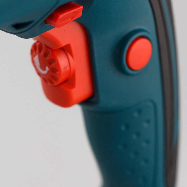 Ισχυρός κινητήρας με κιβώτιο αλουμινίου και δυνατότητα επιλογής δύο ταχυτήτων.Διαθέτει σκανδάλη μεταβλητής ταχύτητας με κλειδαριά ενεργοποίησης για παρατεταμένη λειτουργία και έλεγχο στροφών. Ο μεταλλικός οδηγός βάθους εξυπηρετεί να γίνεται η διάτρηση στο επιθυμητό σημείο. Με μεταλλικό αυτόματο τσοκ για γρήγορη αλλαγή και ρυθμιζόμενη πλευρική λαβή που μπορεί να μετακινηθεί για καλύτερη αξιοποίηση σε σκληρές συνθήκες.