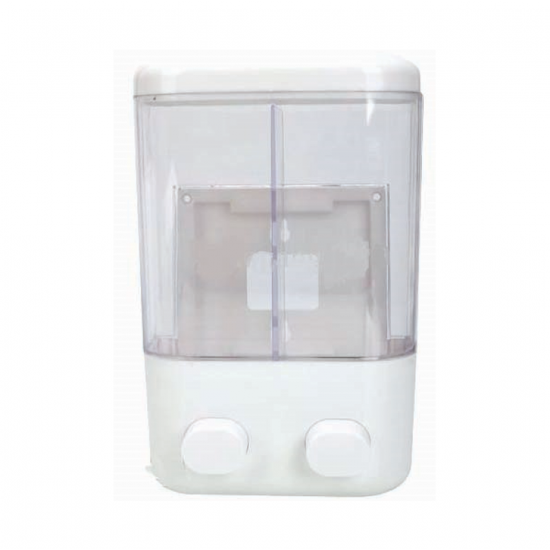 Πλαστικό dispenser τοίχου διπλό για υγρά καθαριστικά,σε λευκό χρώμα, 500 ml χωρητικότητα (χ2).
