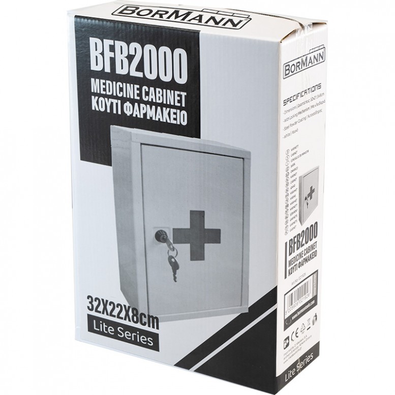Bormann BFB2000 Μεταλλικό Φαρμακείο Πρώτων Βοηθειών Τοίχου με Κλειδαριά 32x22x8cm