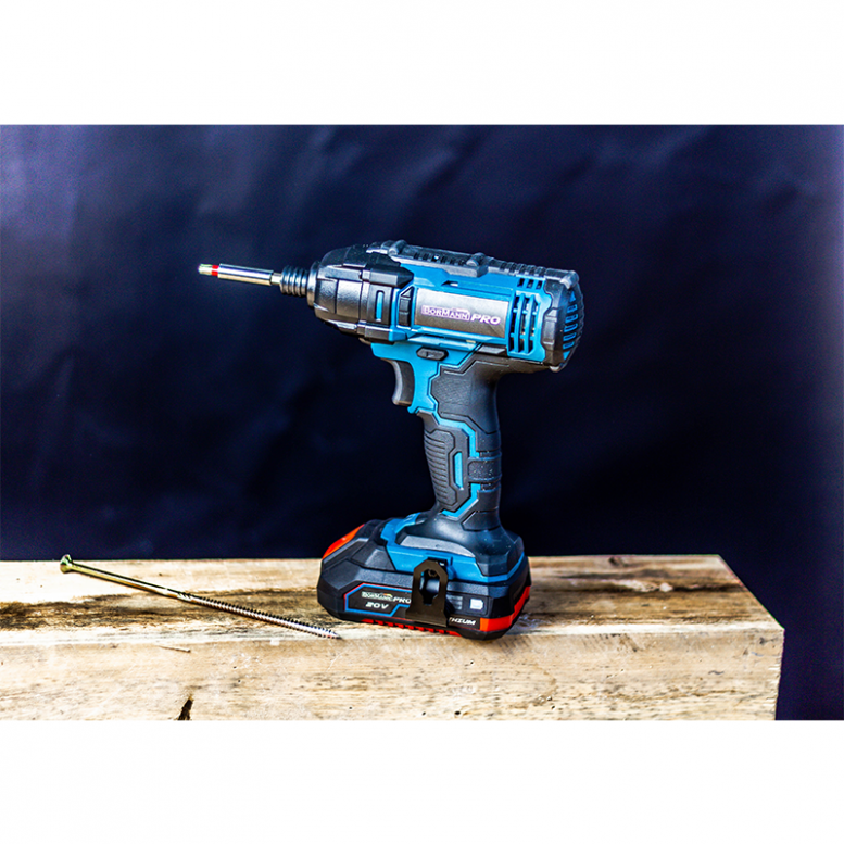 Ελαφρύ και συμπαγές , με ισχυρή κρούση και μεγάλη αυτονομία, για εργασία σε στενούς χώρους για μεγάλα χρονικά διαστήματα. Η μετάδοση υψηλής ταχύτητας παρέχει δύο παραλλαγές. Το ενσωματωμένο LED παρέχει μεγάλη ορατότητα ακόμη και σε σκοτεινό περιβάλλον εργασίας. Η άνετη λαβή προσθέτει ισορροπία και έλεγχο. Συμβατό με την πλήρη σειρά μπαταριών BormannPro 20-Volt.